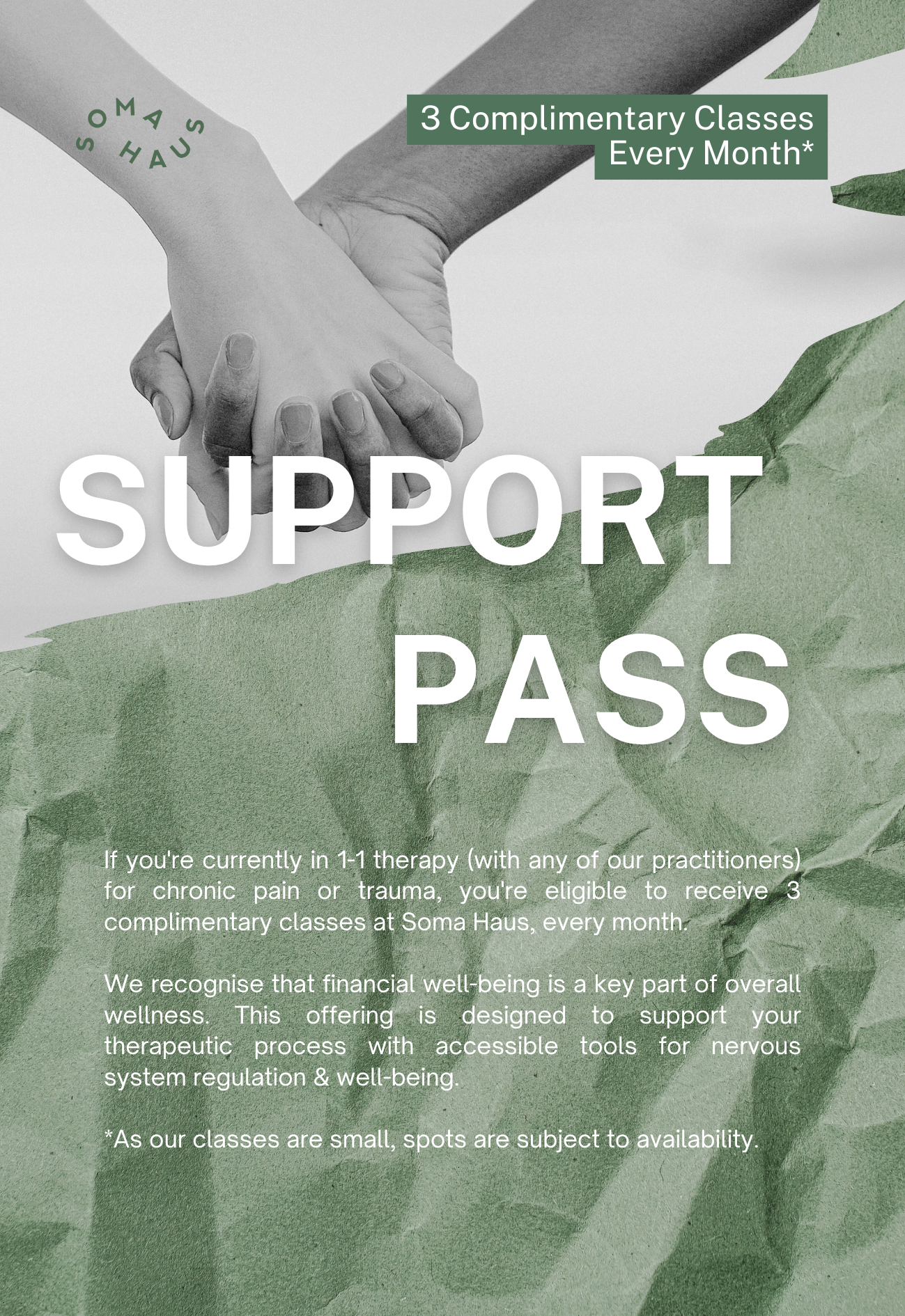As part of our commitment to become a socially responsible wellness centre that recognises individuals’ varying access to resources, we will be: