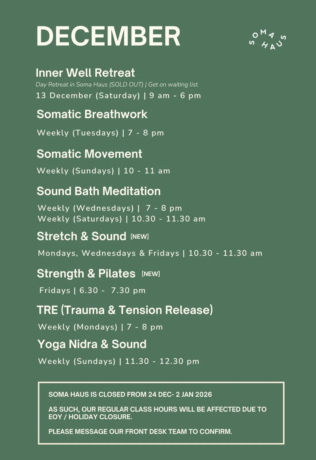 Rooted in Soma Haus’ philosophy of slowing down and tuning in, this workshop invites you to reconnect with your body’s innate wisdom.